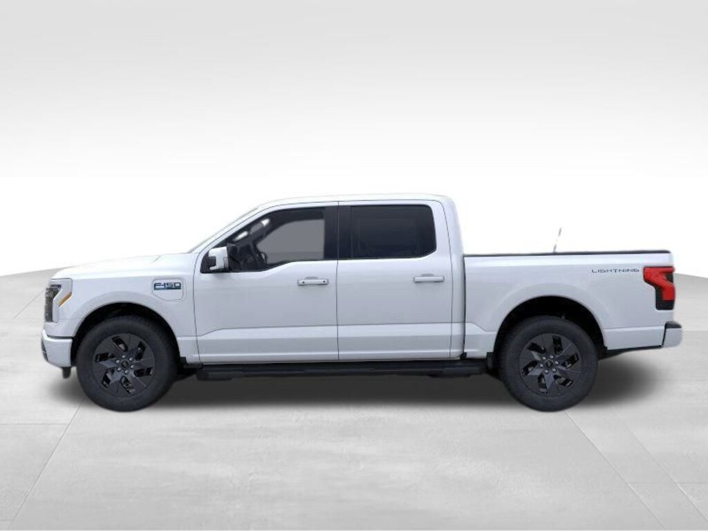 Our 2025 Ford F-150 Lightning Lariat SuperCrew 4X4 boasts optimized technology and electrified strength in Space White Metallic! Powered by Dual Electric Motors generating a combined 452hp for a Single Speed Automatic transmission. This Four Wheel Drive truck is quick, capable, and ready to go nearly 240 miles before recharging, thanks to a 131kWh battery pack. Our F-150 Lightning looks great, too, with a twin-pane sunroof, LED lighting, a power tailgate, illuminated running boards, alloy wheels, and functional advantages like a Mega Power frunk, an onboard generator, and built-in payload/trailer scales.
