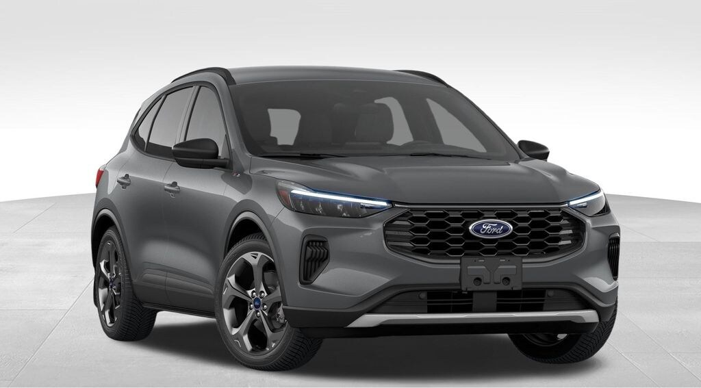 Our bold 2026 Ford Escape ST-Line AWD is packed with performance flair and cutting-edge tech in Gray. Powered by a TurboCharged 1.5 Liter EcoBoost 3 Cylinder providing 180hp to an eCVT for energetic everyday capability. Agile and versatile, this All Wheel Drive SUV also scores nearly 32mpg on the highway with responsive handling for urban adventures. For an athletic impression, our Escape is proudly presented with LED signature lighting, a power liftgate, chrome-tipped exhaust outlets, alloy wheels, and ST-Line upgrades like a black mesh grille, a large rear spoiler, an exclusive rear skid plate, and black roof rails.
