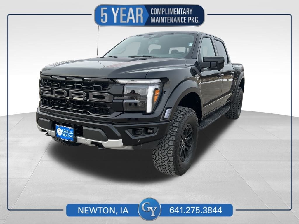 Our 2026 Ford F-150 Raptor SuperCrew 4X4 is a bold driving machine built to go almost anywhere in Agate Black Metallic! Motivated by a Twin-TurboCharged 3.5 Liter High Output EcoBoost V6 supplying 450hp to a 10 Speed Automatic transmission with dedicated off-road modes. They work with exclusive Four Wheel Drive Raptor suspension upgrades, Trail Control, and an electronic locking differential to handle pavement, trails, and uncharted territory, and it returns nearly 18mpg on the highway. Revved-up Raptor design cues include LED lighting, cast-aluminum running boards, hood-mounted heat extractors, fender flares, a spray-on bedliner, a power sunroof, and aggressive alloy wheels. A Pro Power generator is onboard as well!