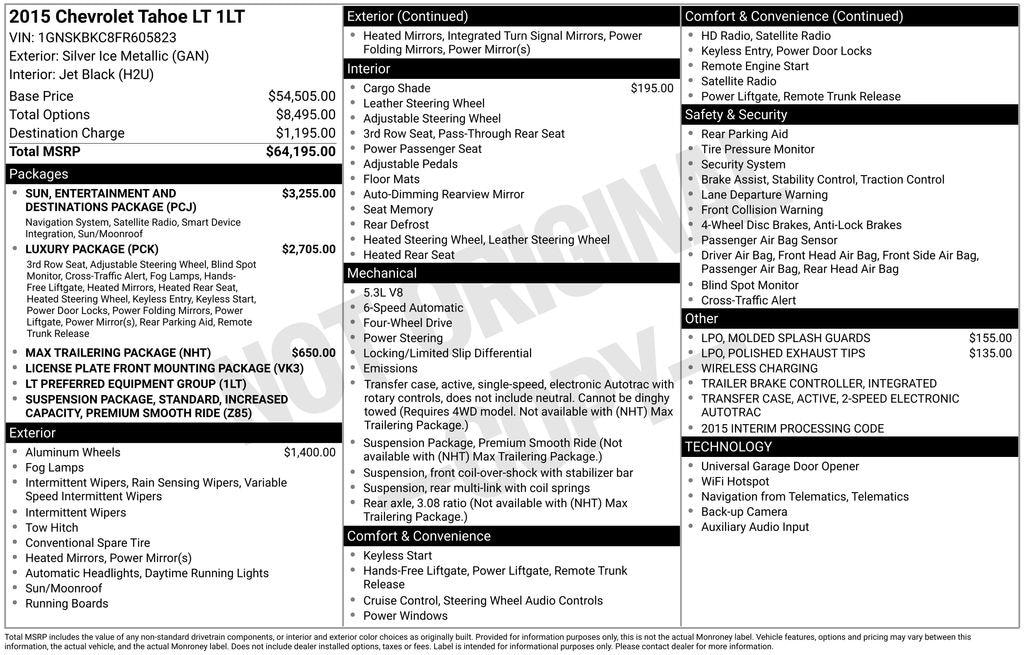 Used 2015 ChevroletTahoe LT SUV Engine: , V-8, SIDI, Active Fuel Mgt