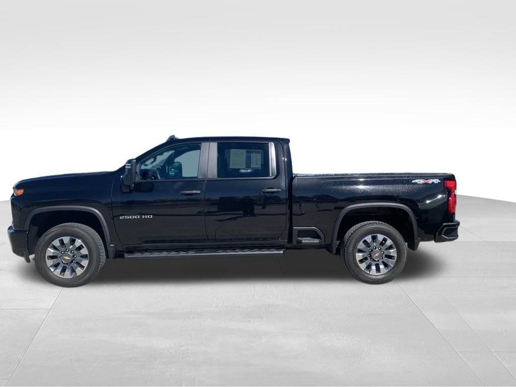 Diesel powered, our One Owner 2023 Chevrolet Silverado 2500HD Custom Crew Cab 4X4 with the Value Pack can inspire impressive confidence in Mosaic Black Metallic! Motivated by a TurboCharged 6.6 Liter DuraMax Diesel V8 delivering 445hp and 910lb-ft of torque to a 10 Speed Allison Automatic transmission for high levels of capability. This Four Wheel Drive truck also features an auto-locking rear differential to get a better grip, and it stands strong with muscular good looks. Exterior highlights include 20-inch alloy wheels, a CornerStep rear bumper, side BedSteps, a trailer hitch, and our Value Pack's LED cargo-bed lighting, an EZ Lift power lock/release tailgate, and power-folding trailer mirrors.