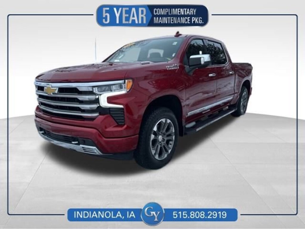 **Accident Free**2025**Chevrolet**Silverado 1500**High Country**4WD**Heated & Ventilated Front Seats**Heated Rear Seats**Heated Steering Wheel**Check out our Diesel driven Accident Free 2025 Chevrolet Silverado 1500 High Country Crew Cab 4X4, which is filled with features for better days in Radiant Red Tintcoat! Powered by a TurboCharged DuraMax Diesel 6 Cylinder generating 305hp and 495lb-ft of torque for a 10 Speed Automatic transmission. A high-capacity suspension helps you maintain your composure during extreme challenges, and this Four Wheel Drive truck achieves nearly 26mpg on the highway. Our Silverado 1500 is ready for attention with LED lighting, fog lamps, MultiFlex tailgate, 20-inch aluminum wheels, chrome side steps, perimeter lighting, and a spray-on bedliner.Be impressed with our High Country cabin that helps elevate your mood with heated/ventilated leather power front and heated rear seats, a heated-wrapped power steering wheel, dual-zone automatic climate control, a power sliding rear window, and remote start. A technological tour de force, the infotainment system bundles a 13.4-inch touchscreen, a 12.3-inch driver display, Google Built-in, wireless Apple CarPlay®/Android Auto®, WiFi compatibility, and Bose audio.Chevrolet provides a fantastic finishing touch with impressive safety systems such as a bed-view camera, adaptive cruise control, trailer blind-spot monitoring, enhanced automatic braking, lane-keeping assistance, forward collision warning, pedestrian detection, HD surround vision, parking sensors, and more. When it's time for better trucking, it's time for our Silverado 1500 High Country! Save this Page and Call for Availability. We Know You Will Enjoy Your Test Drive Towards Ownership!