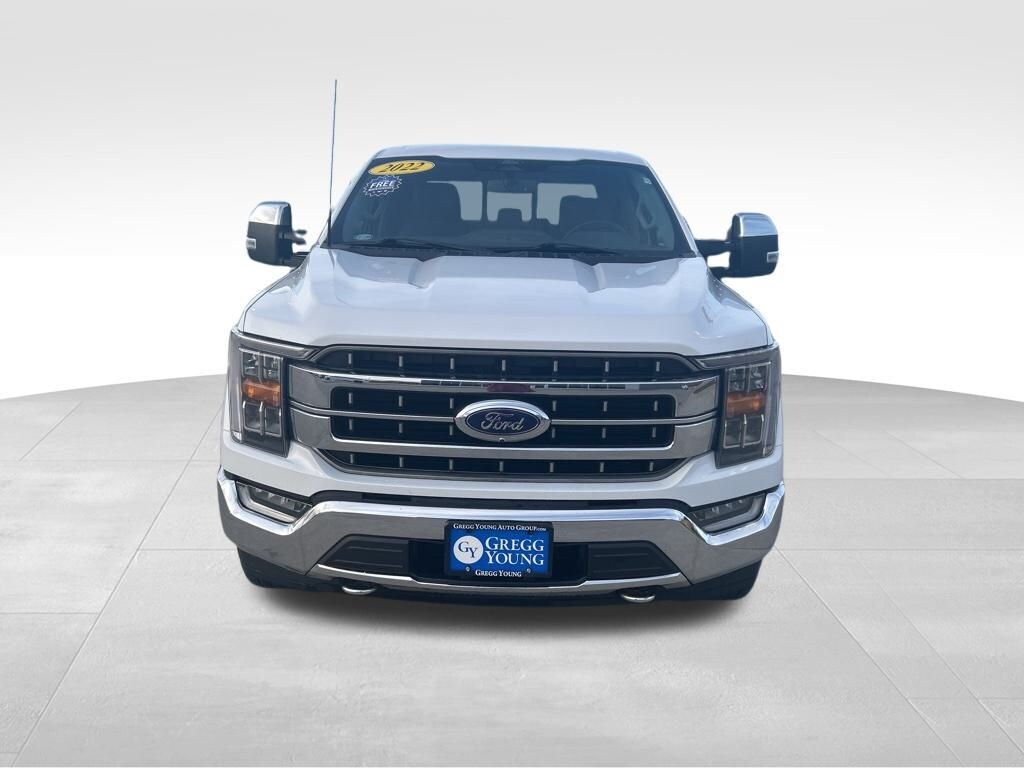 Our impressive One Owner 2022 Ford F-150 Lariat SuperCrew 4X4 with the FX4 Off Road and Chrome Appearance Packs in Oxford White has been rigorously tested, so it treats you right! Motivated by a Twin-TurboCharged 3.5 Liter EcoBoost V6 offering 400hp paired to a 10 Speed SelectShift Automatic transmission for torque-friendly towing and hauling. This Four Wheel Drive truck also returns nearly 23mpg on the highway. It shows off a proud and purposeful design with LED lighting, fog lamps, chrome bumpers, heated power-folding mirrors, running boards, a bedliner, bold 18-inch chrome-like PVD wheels, and a high-strength bed with the BoxLink cargo-management system. With those features, you can make an impression on the town and the job site!