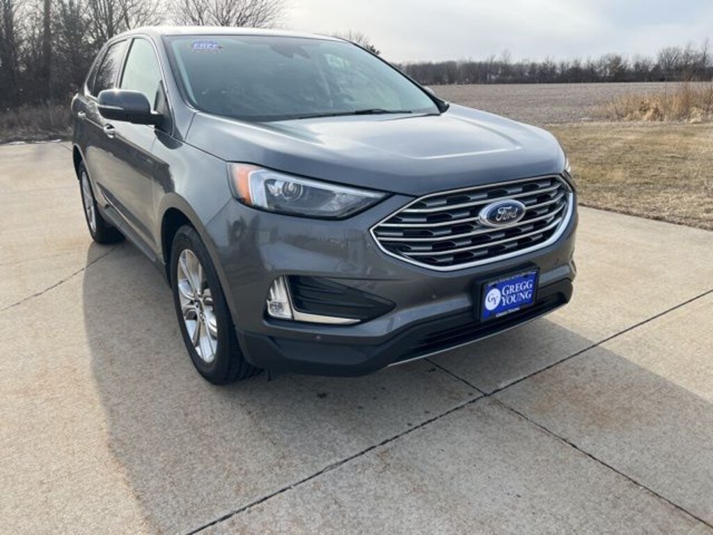 Drive our **2024**Ford**Edge**Titanium**AWD**Heated Seats**Heated Steering Wheel** to experience the luxury of versatility in Carbonized Gray Metallic! Powered by a TurboCharged 2.0 Liter EcoBoost 4 Cylinder supplying 250hp to an 8 Speed Automatic transmission with a sophisticated rotary gear selector. Composed handling helps you keep comfortably on the move, and this All Wheel Drive SUV returns nearly 28mpg on the highway. Bold Edge design comes into the picture with LED signature lighting, fog lamps, a hands-free liftgate, bright-tipped integrated exhaust outlets, a chrome grille, a rear spoiler, and eye-catching 20-inch alloy wheels.