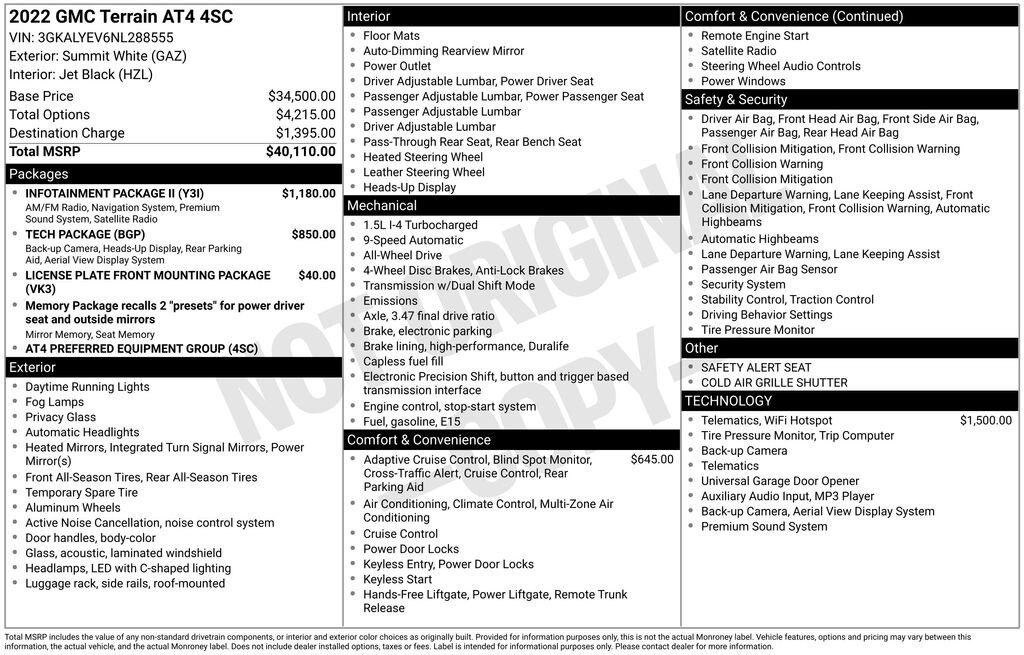 Used 2022 GMCTerrain AT4 SUV Turbo 4-cylinder engine