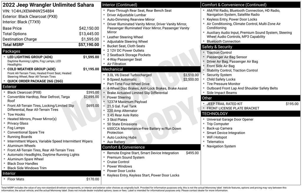 **One Owner**2022**Jeep**Wrangler**Unlimited Sahara**Cold Weather Group**Heated Seats**Heated Steering Wheel**Remote Start**Roof Rack**Navigation**