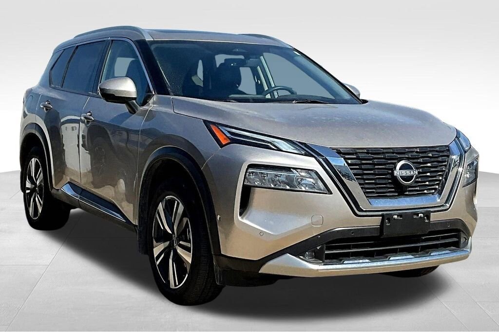 **One Owner**Accident Free**2022**Nissan**Rogue**Platinum**AWD**Navigation**Heated Steering Wheel**Sunroof**Leather Seats**Heated Seats**A superior SUV, our One Owner, Accident Free 2022 Nissan Rogue Platinum AWD combines capability and comfort for drivers just like you in Champagne Silver Metallic. Powered by a TurboCharged 1.5 Liter 3 Cylinder offering 201hp to a paddle-shifted CVT with dedicated Sport and Eco modes. This easy-to-maneuver All Wheel SUV also scores nearly 34mpg on the highway with a daring design. You can recognize our Rogue from LED lighting, fog lamps, dual-pane panoramic sunroof, hands-free tailgate, roof rails, rear spoiler, multifunction mirrors, and 19-inch alloy wheels.Quilted and heated semi-aniline leather power front and remote-folding rear seats, a heated PrimaTex steering wheel, tri-zone automatic climate control, remote start, keyless access, and pushbutton ignition are at your service for stunning luxury in our Platinum cabin. The technology is equally impressive, thanks to a digital dashboard, a 9-inch touchscreen, full-color navigation, wireless Apple CarPlay/device charging, Android Auto, Bluetooth, WiFi compatibility, and Bose audio with a dual-driver woofer.As for intelligent driver assistance, Nissan provides ProPILOT Assist for semi-autonomous driving to go with an AroundView monitor, front/rear automatic braking, active blind-spot intervention, and more. It's advantages like those that make our Rogue Platinum so rewarding! Save this Page and Call for Availability. We Know You Will Enjoy Your Test Drive Towards Ownership!