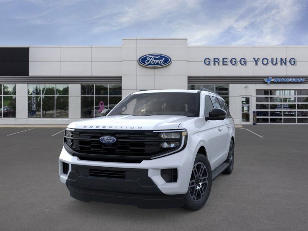 Eager for adventure, our 2025 Ford Expedition Active 4WD with 202A High Pack delivers bold performance and generous space in Space Silver Metallic style! Powered by a Twin-TurboCharged 3.5 Liter EcoBoost V6 delivering 400hp to a 10 Speed SelectShift Automatic transmission. The result is a Four Wheel Drive SUV with fierce strength, composed handling, and the ability to achieve nearly 22mpg on the highway. This Expedition also expresses a bold style with LED lighting, dark alloy wheels, black roof rails, black running boards, a flip-up liftgate window, a sunroof, a Class IV hitch receiver, and heated power mirrors with approach lights.