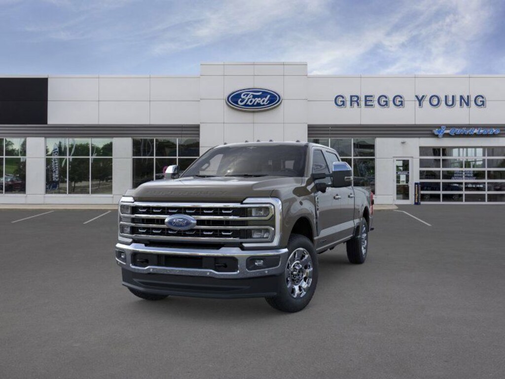 Built for strength and precision, our diesel-driven 2026 Ford F-350 Lariat Crew Cab 4X4 in Marsh Gray Metallic conquers demanding tasks with refined power. Motivated by a TurboCharged 6.7 Liter PowerStroke Diesel V8 serving up 475hp and 1050lb-ft of torque to a 10 Speed Automatic transmission. This Four Wheel Drive truck complements that muscle with a rugged suspension for an easy ride. Equipped for dealing with the daily grind, our bold Ford F-350 boasts LED lighting, fog lamps, PowerScope trailer mirrors with built-in spotlights, chrome bumpers, a power-lock/remote-release tailgate, and alloy wheels.