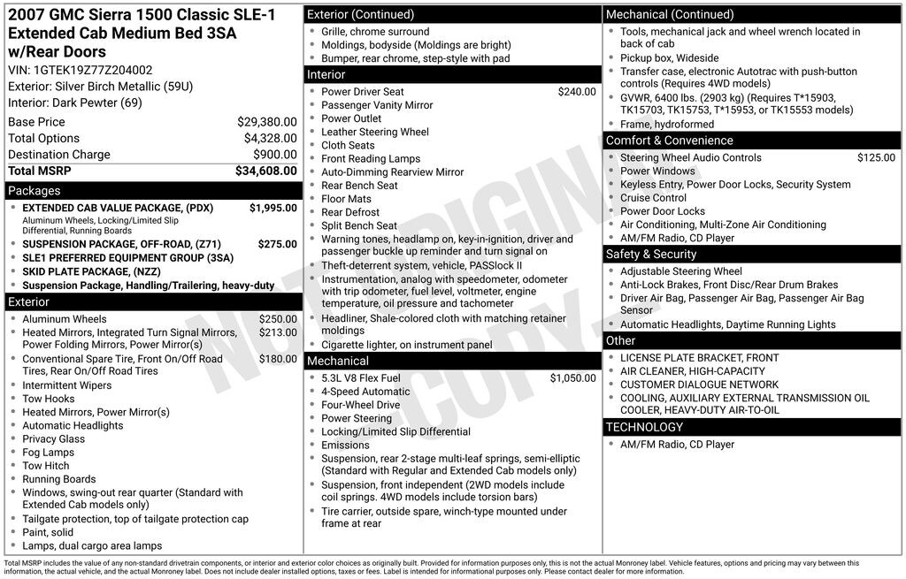 Enjoy our 2007 GMC Sierra 1500 Classic SLE1 Extended Cab 4X4 that looks rugged in Silver Birch Metallic. Powered by a 5.3 Liter V8 generating 315hp connected to a 4 Speed Automatic transmission with Overdrive. This Four Wheel Drive truck works hard to get you down the road with style while earning up to 20mpg on the highway. Bold steel wheels and a menacing chrome grille let the world know that this Sierra 1500 means business!