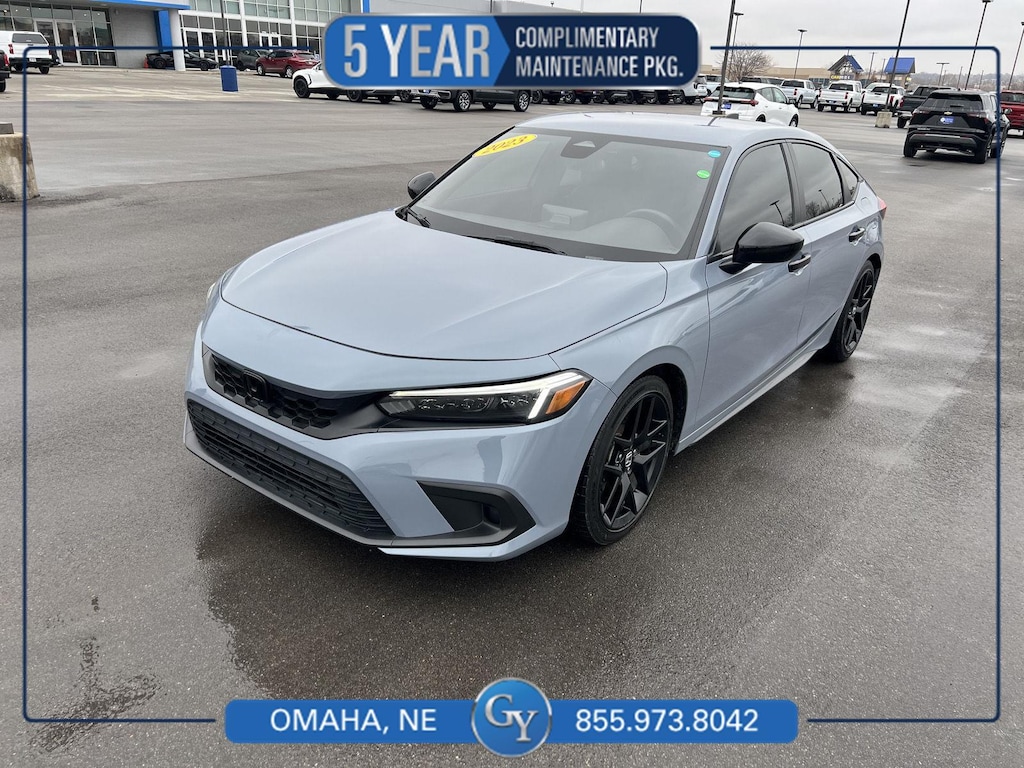 Why BUY from Gregg Young Chevy Omaha? When you choose this Sonic Gray Pearl 2023 Honda Civic Sport with 55,225 miles, you are not just buying a used vehicle - you are investing in quality, reliability and peace of mind. Our clientele depend on us for Transparent Pricing, Convenience and, most importantly, Customer FIRST Service! All purchases include 5 year Complimentary Maintenance Package, valued at over $1,000! What this vehicle includes: Safety and Security Forward collision mitigation - Forward thinking. You look away for just a second and suddenly the vehicle in front of you has stopped. That's when the forward collision mitigation system comes to life. When it senses an impending impact, it will activate a combination of features to help prevent or reduce the severity of an accident. Forward collision mitigation is always looking ahead. Pedestrian impact prevention - An extra step toward safety. Pedestrians don't always stop, look, and listen, but with Pedestrian Impact Prevention, your vehicle is equipped to better see them and avoid them. This system constantly monitors the road ahead to identify and track pedestrians. It projects that image to an interior display screen, AND should an impact become likely, Pedestrian impact prevention takes steps to avoid a collision. Hands-on cruise control. Set it and forget it. Road trips used to be stressful. Cruise control only managed speed, but not distance or safety. Now, with hands-on cruise control, simply set your desired speed and let sensor technology maintain a safe distance between you and surrounding vehicles. It slows you down; speeds you up and even keeps you in your own lane. Meet your ultimate co-pilot with hands-on cruise control. Rear camera - Watching your back! The rear camera helps you see obstacles and hazards you otherwise couldn't by showing enhanced images of what is behind you. The rear camera is an extra set of eyes that's both convenient and safe.Technology and Telematics Smart device mirroring - Smartphone, meet smart car. You can control your device through your vehicle's infotainment system. Smart device mirroring brings together safety and convenience by making it easier to find what you're looking for while keeping your eyes on the road. SONIC GRAY PEARL, BLACK, FABRIC SEATING SURFACES When you choose a Certified Pre-Owned vehicle from Gregg Young, youre not just buying a used car youre getting extra protection, added peace of mind, and built-in value you wont find with an ordinary pre-owned vehicle. Every Certified Pre-Owned vehicle must pass an extensive 172-point inspection performed by trained technicians. From engine and transmission performance to interior quality, safety features, and road-test standards, we verify the vehicle meets strict certification requirements before it ever reaches our lot. Ask if this vehicle qualifies for our Certified Pre-Owned Program 12-Month / 12,000-Mile Premier Coverage Drive confidently from day one. Our Premier Warranty* protects you against unexpected repairs for your first 12 months or 12,000 miles. Whats covered? Practically all major vehicle components (excluding maintenance items and wear-and-tear parts) Electrical, mechanical, interior, exterior, and more giving you true peace of mind with your purchase. 36-Month / 100,000-Mile Powertrain Protection Our Certified Powertrain Warranty** keeps you covered long after you leave the dealership, protecting many of your vehicles most important and expensive components for up to 36 months or 100,000 miles. What's covered? Engine Parts Transmission/Transaxle Parts Drive Axle Parts Hybrid Components Transfer Case Components Come on in to Gregg Young Chevy Omaha today at 17750 Burt St Omaha NE 68118 or call (888) 617-6478 to schedule a test drive! What sets Gregg Young Chevrolet of Omaha apart? Family-run leadership Gregg Young and his children actively manage the dealership, blending experience with a personal touch. Community commitment supporting local chariti