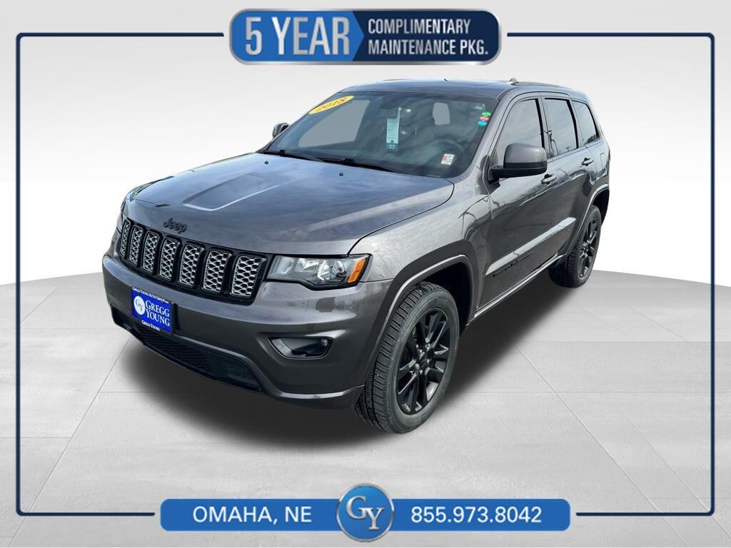 Why BUY from Gregg Young Chevy Omaha? When you choose this Granite Crystal Metallic Clearcoat 2018 Jeep Grand Cherokee Altitude with 125,186 miles, you are not just buying a used vehicle - you are investing in quality, reliability and peace of mind. Our clientele depend on us for Transparent Pricing, Convenience and, most importantly, Customer FIRST Service! All purchases include 5 year Complimentary Maintenance Package, valued at over $1,000! What this vehicle includes: Quick Order Package 2BZ Altitude ($6,195 value)Altitude IV PackageSecurity and Convenience GroupRear Fascia Black MIC Step PadRear View Auto Dim MirrorPower 8-Way Driver/manual Passenger SeatPower 4-Way Driver Lumbar AdjustBlack Suede Seats with Black StitchingDark Lens TaillampsJeep Black Gloss BadgingGloss Black Rear Fascia AppliqueBody Color FasciaDark Headlamp Bezel FinishAltitude GrilleFront Accent/body Color FasciaRear Accent/body Color FasciaDark Day Light Opening MoldingsBody Color CladdingsDelete Laredo BadgeSingle Exhaust with Bright TipSteering Wheel Mounted Audio ControlsBody Color Shark Fin AntennaSiriusXM Satellite RadioUconnect 4C Navigation Radio with 8.4" Display20" X 8.0" Gloss Black Aluminum Wheels1-Year SiriusXM Radio ServiceSecurity and Convenience Group115V Auxiliary Power OutletHeated Front SeatsPower LiftgateSecurity AlarmHeated Steering WheelRemote Start SystemUniversal Garage Door Opener Comfort Heated steering wheel - A warm touch. Trying to drive with bulky winter gloves on isn't always easy. Keep your hands warm in cold temperatures so you can ditch the mitts and get a firm grip with this heated steering wheel.Convenience Power open and close liftgate - On-demand access. When your arms are full of cargo, the last thing you want to do is set it all down just to open the liftgate, then pick it all back up to load it in. By remotely opening and closing, power liftgate lets you skip straight to the loading. It also eliminates the awkward stretch to reach up for the liftgate to close it. Load and go with power open and close liftgate. Keyfob engine start control - Get an early start. Remotely start your vehicle's engine from the key fob, ensuring your ride is ready to go when you get in. Now you can stay comfortable inside while your vehicle gets comfortable outside, thanks to Keyfob engine start control.Technology and Telematics Smart device mirroring - Smartphone, meet smart car. You can control your device through your vehicle's infotainment system. Smart device mirroring brings together safety and convenience by making it easier to find what you're looking for while keeping your eyes on the road. Voice activated integrated navigation system - A to B made easy! Whether it's an errand or a road trip, the voice activated integrated navigation system will guide you to your destination. No more bulky, impossible-to-fold maps, and no more stopping to ask for directions. Just tell it where you want to go, and the voice activated integrated navigation system shows you the right way. ENGINE: 3.6L V6 24V VVT UPG I W/ESS, TRANSMISSION: 8-SPEED AUTOMATIC (850RE), QUICK ORDER PACKAGE 2BZ ALTITUDE, TIRES: 265/50R20 BSW A/S LRR, GRANITE CRYSTAL METALLIC CLEARCOAT, BLACK, BLACK SUEDE SEATS W/BLACK STITCHING, 18" STEEL COMPACT SPARE WHEEL, POWER SUNROOF, FRONT LICENSE PLATE BRACKET, MANUFACTURER'S STATEMENT OF ORIGIN When you choose a Certified Pre-Owned vehicle from Gregg Young, youre not just buying a used car youre getting extra protection, added peace of mind, and built-in value you wont find with an ordinary pre-owned vehicle. Every Certified Pre-Owned vehicle must pass an extensive 172-point inspection performed by trained technicians. From engine and transmission performance to interior quality, safety features, and road-test standards, we verify the vehicle meets strict certification requirements before it ever reaches our lot. Ask if this vehicle qualifies for our Certified Pre-Owned Program 12-Month / 12,000-Mile Premier Coverage Drive con