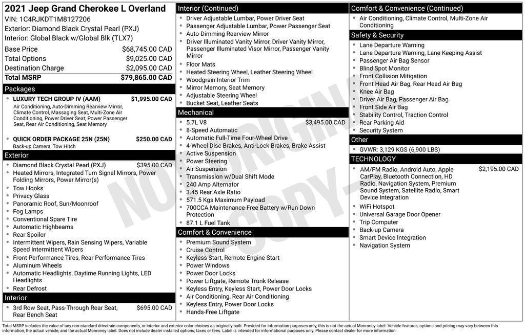 **Accident Free**2021**Jeep**Grand Cherokee L**Overland**4WD**Panoramic Sunroof**Heated/Ventilated/Massaging Front Seats**Heated Steering Wheel**Navigation**